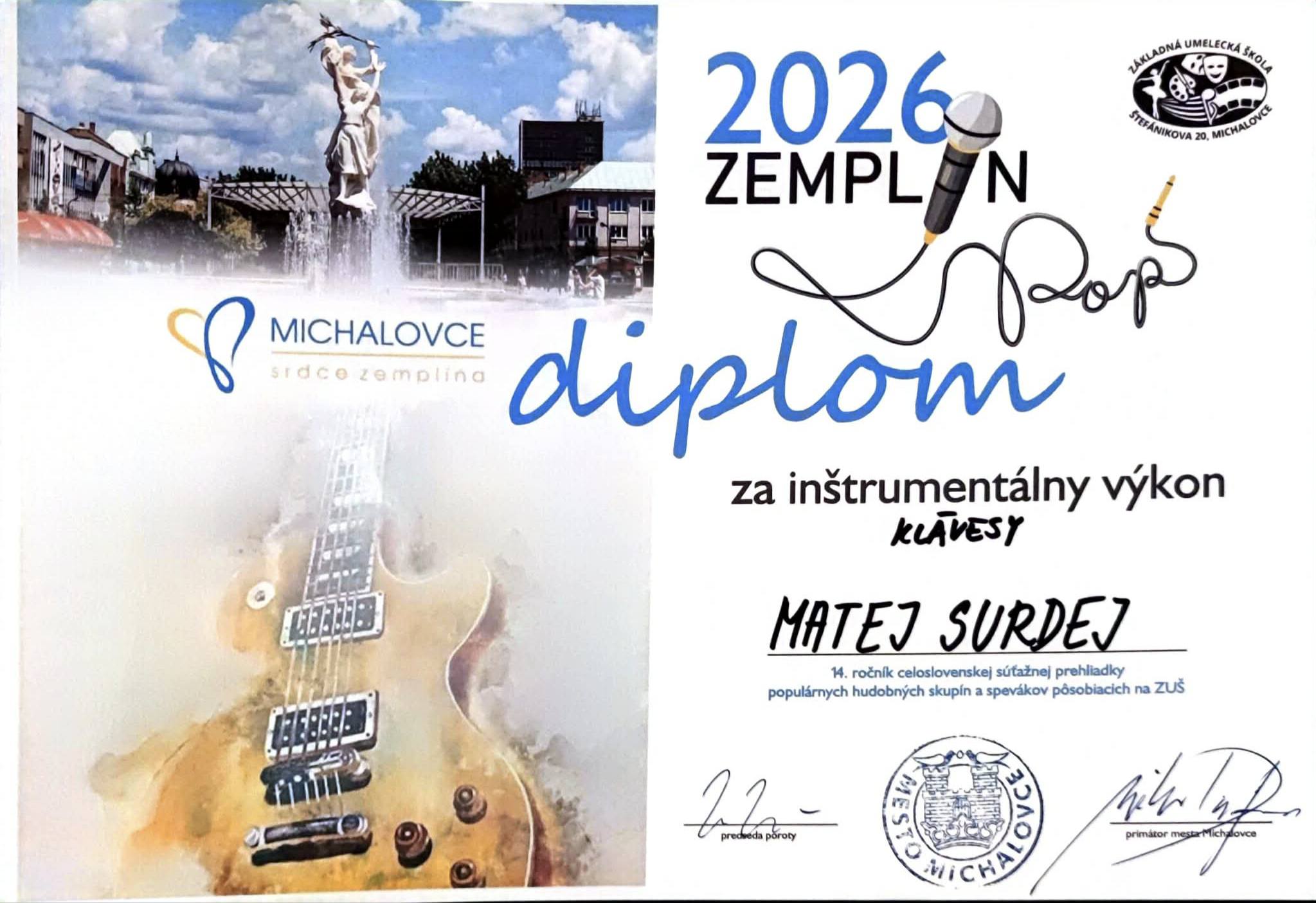 – za inštrumentálny výkon – klávesy: Matej Surdej