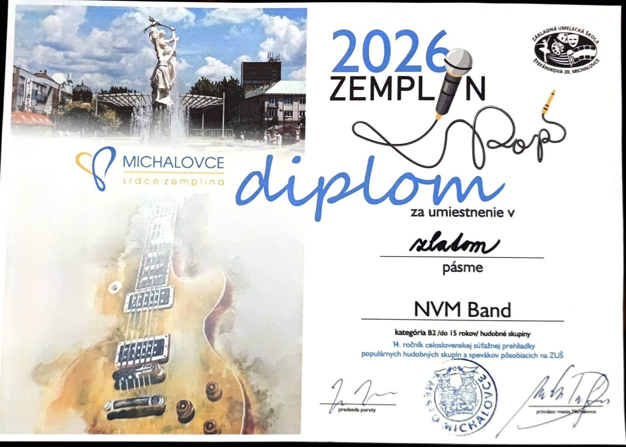Naša kapela NVM band sa predstavila v kategórii B2 (do 15 rokov), kde súťažilo až 10 hudobných skupín. V silnej konkurencii sa im podarilo dosiahnuť mimoriadny úspech –získali zlaté pásmo, čím sa zaradili medzi TOP 3 kapely na Slovensku vo svojej kategórii.